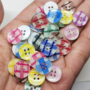 • Fast Delivery 10 Colors 20L 12.5mm 4-Hole Bowl Shape Resin Buttons Colorful Check Pattern for Shirts Blouses DIY Fashion